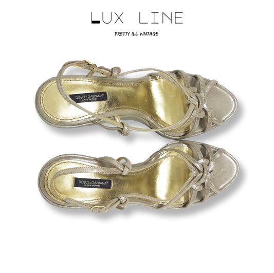 Vintage Metallic Gold "Dolce and Gabbana" Wedge Platform Sandals