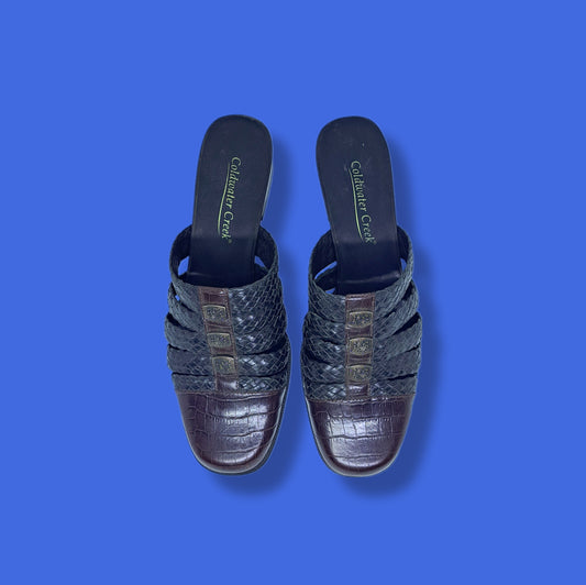 Vintage Chocolate and Black "Coldwater Creek" Mules