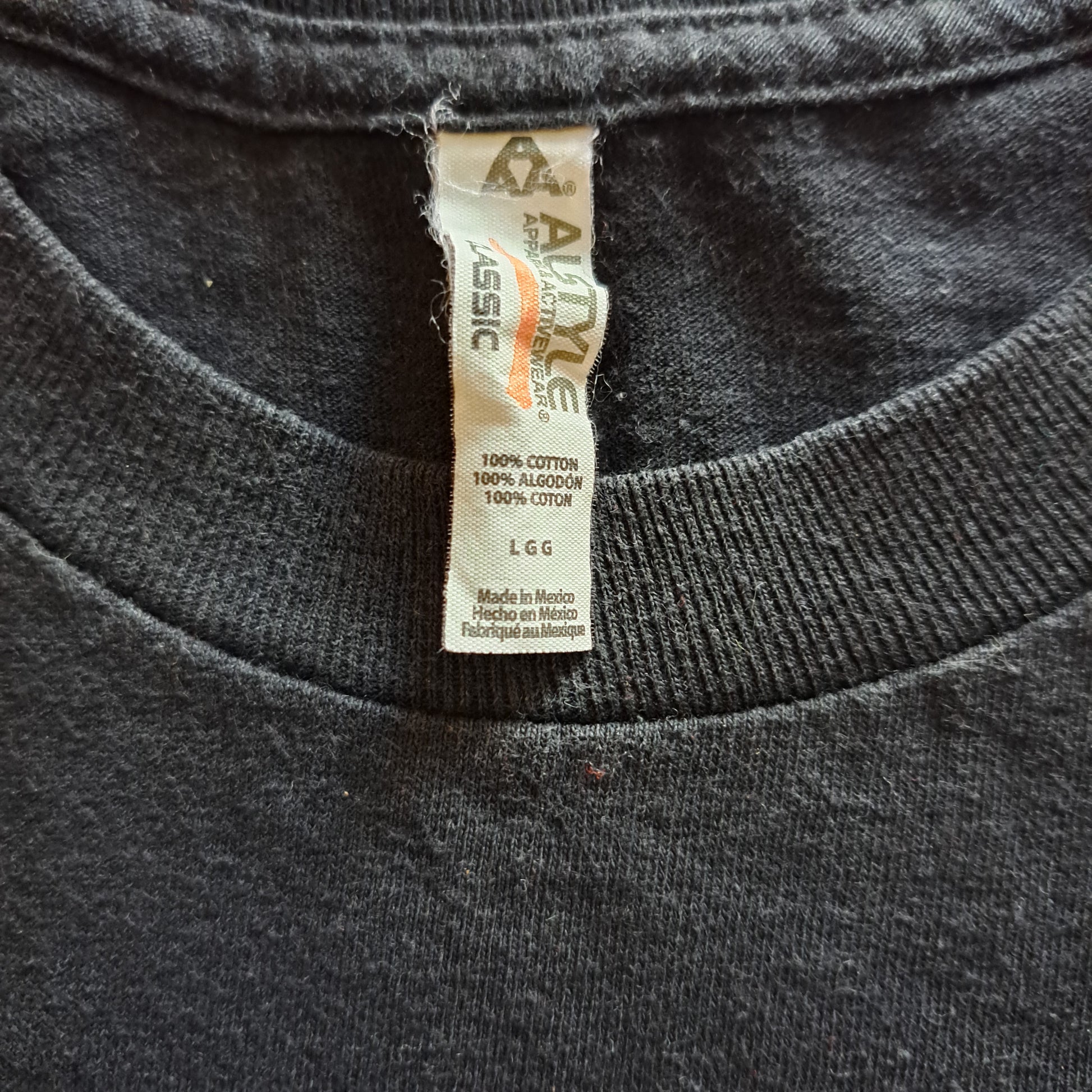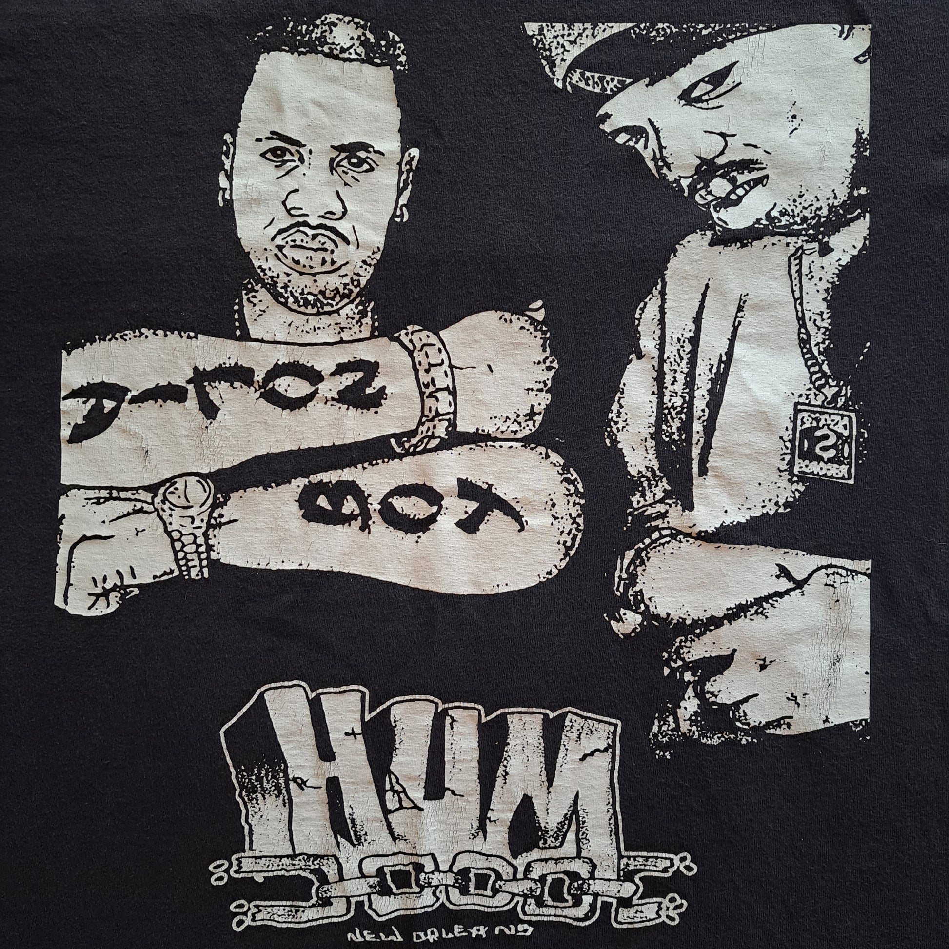 Description: black Cash Money CMB graphic t-shirt featuring B.G. and Juvenile with Nolia Boy tattoo and New Orleans on the bottom (short sleeves cut shorter by previous owner).