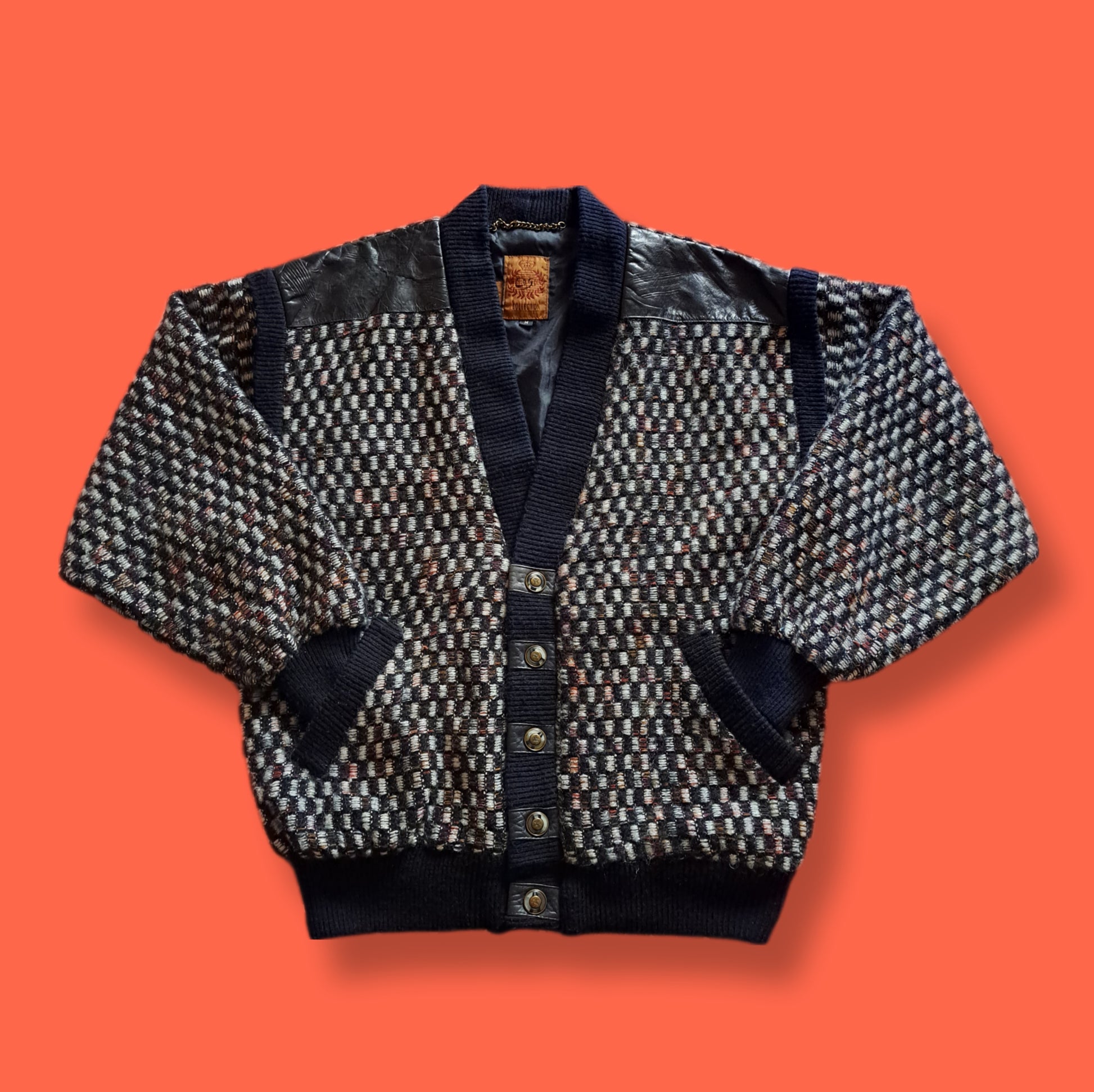 Listing: Vintage "Cosi" Knit Leather Trim Cardigan Sweater