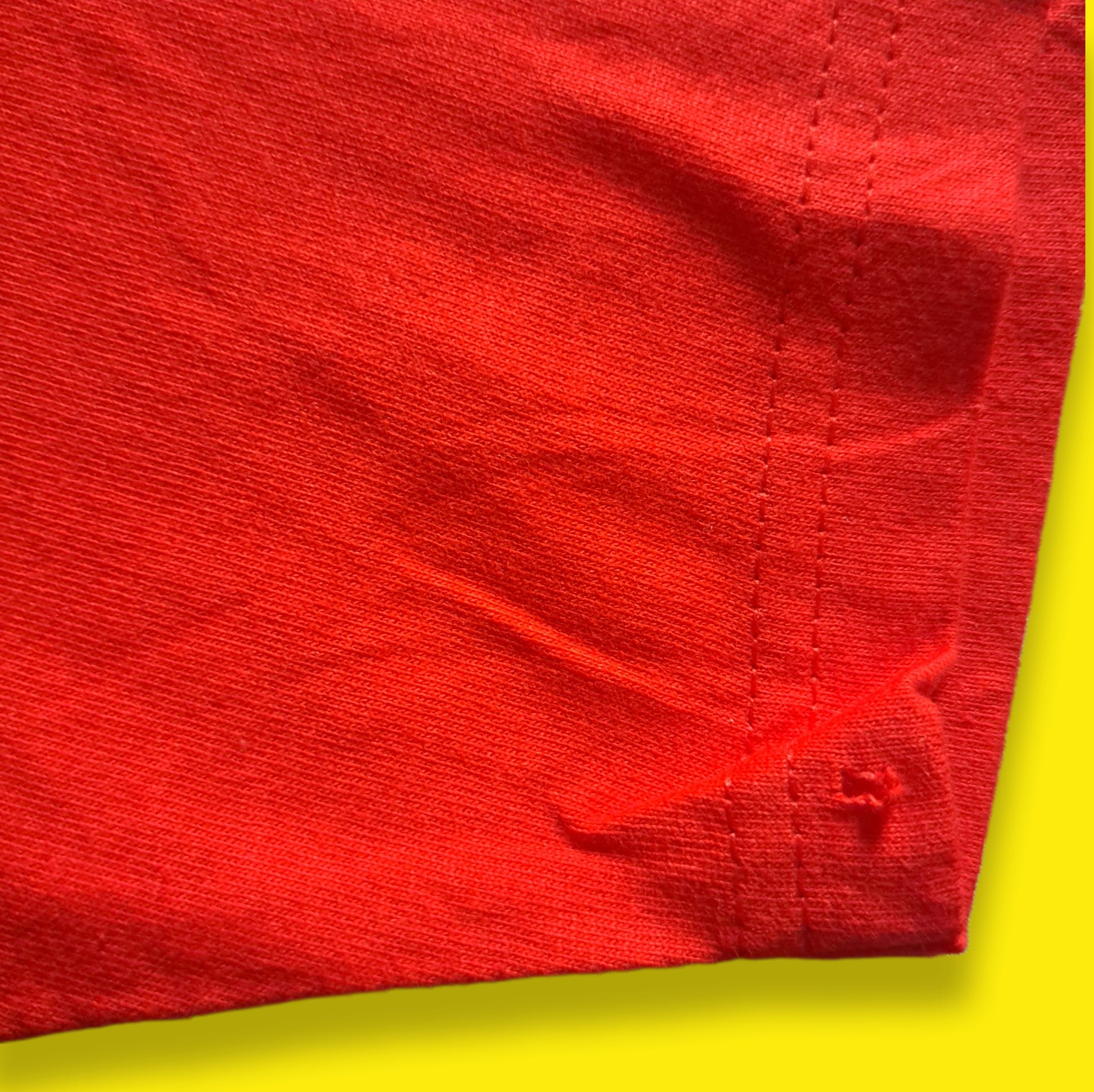 Description: super cool, red and white cut-off t-shirt with "Coca-Cola Real" graphic on the front and "Essence Fest" graphic on the back.