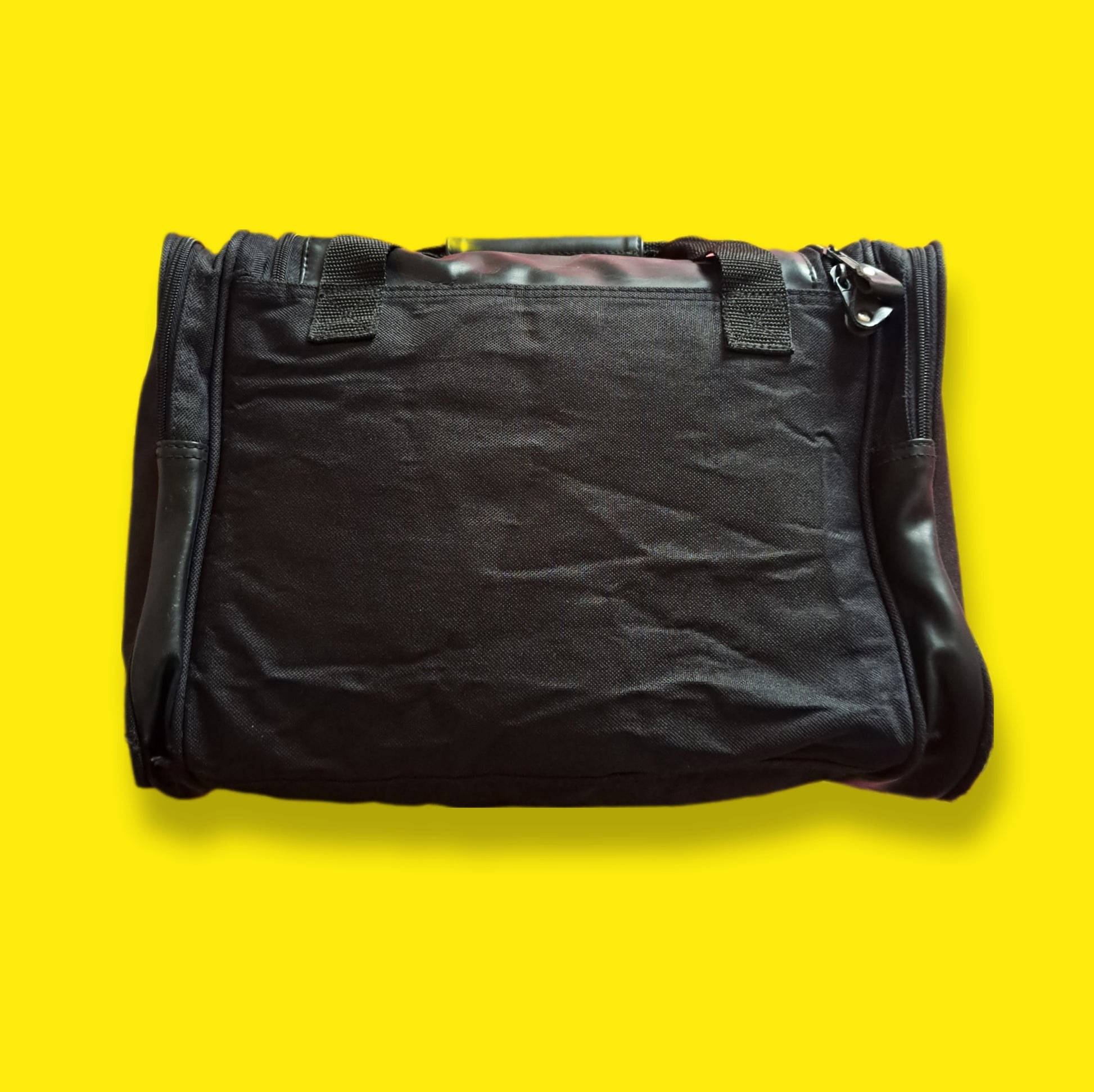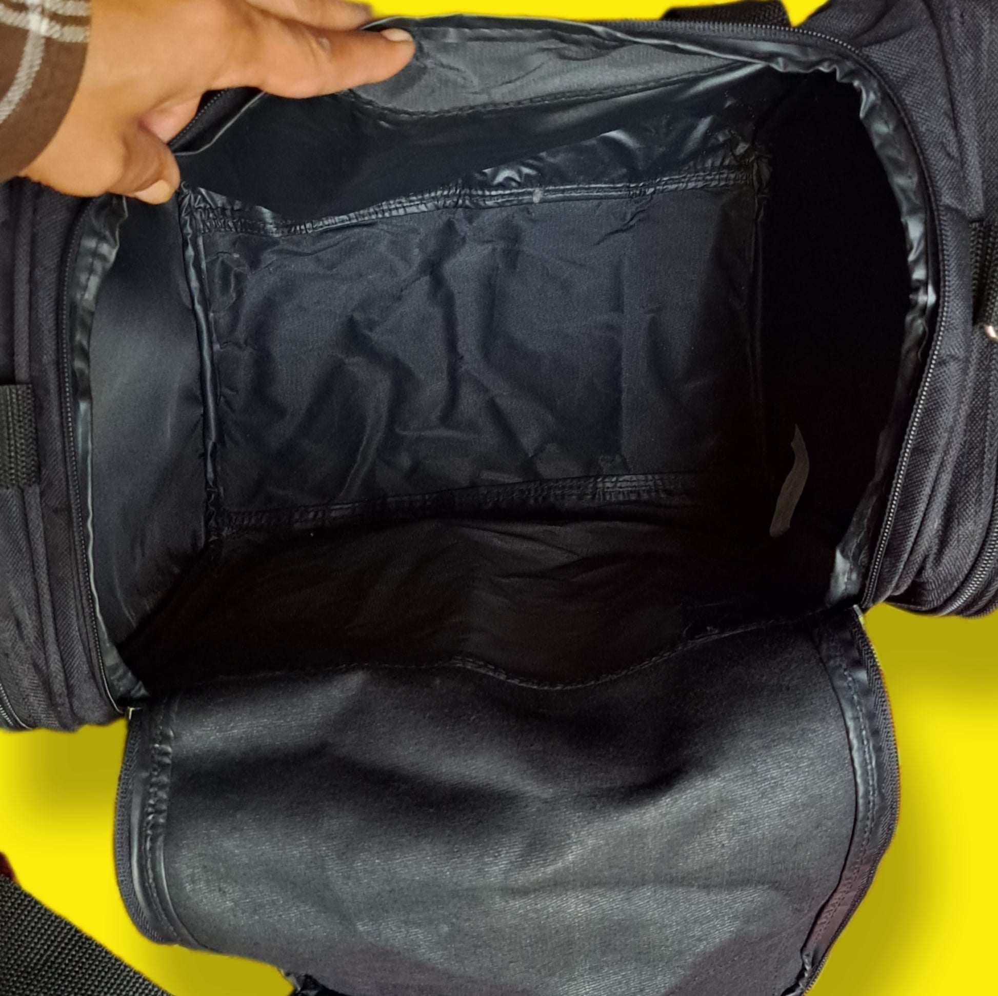 Style: duffle bag with 2 side zip pockets and shoulder and hand straps