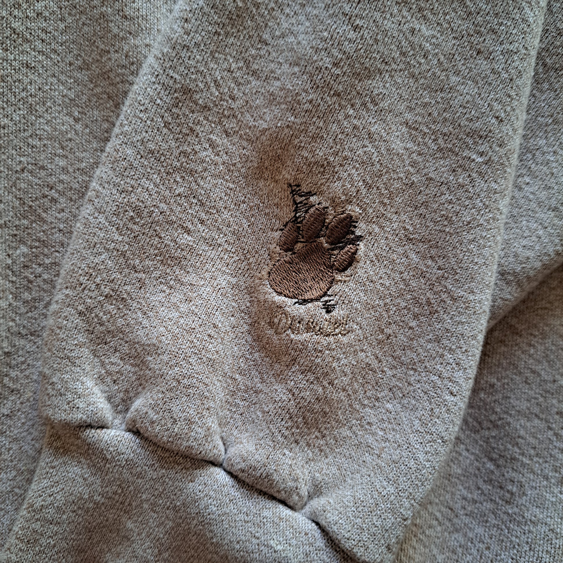Description: awesome, stylish and cozy two tone brown marble wash sweatshirt with embroidered Lion and Daniel chapter 6 verses 1-28 Bible scripture onto eh front and embroidered lion's paw on the sleeve.