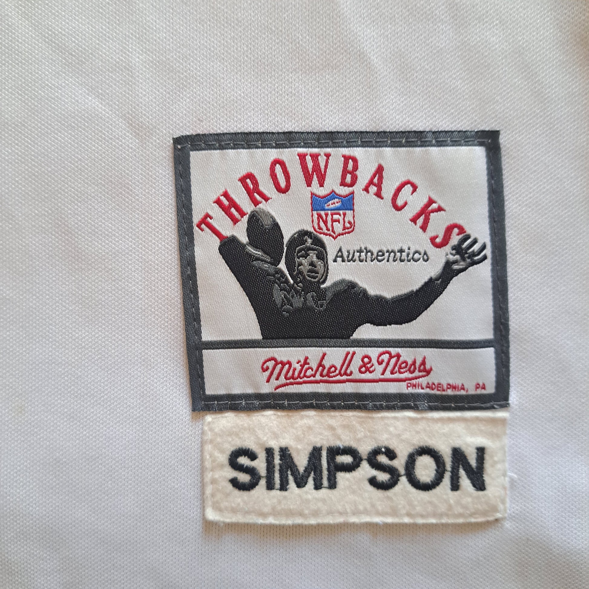 Description: super cool and classic white and blue, Mitchell & Ness number 32 "O.J. Simpson Buffalo Bills" NFL long sleeve jersey with reinforced elbows and stitched details.
