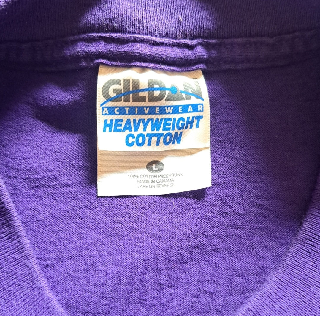 Description: super cool purple t-shirt with "New Love" Comic Book Cover #1 graphic on front. This shirt is promotional for the Love and Rockets Comic book series of 1996 with graphic artist, Gilbert Hernandez.